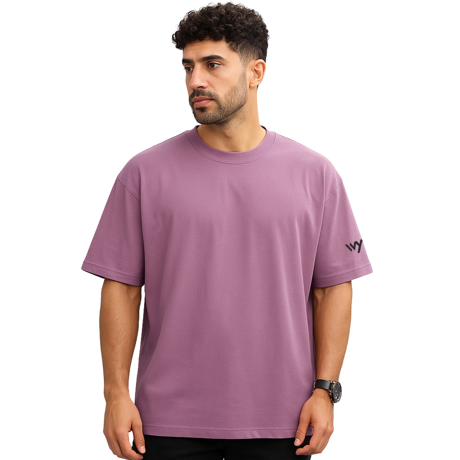 WHT YOU WEAR Solid Oversize Round Neck Olive T-Shirt for Men