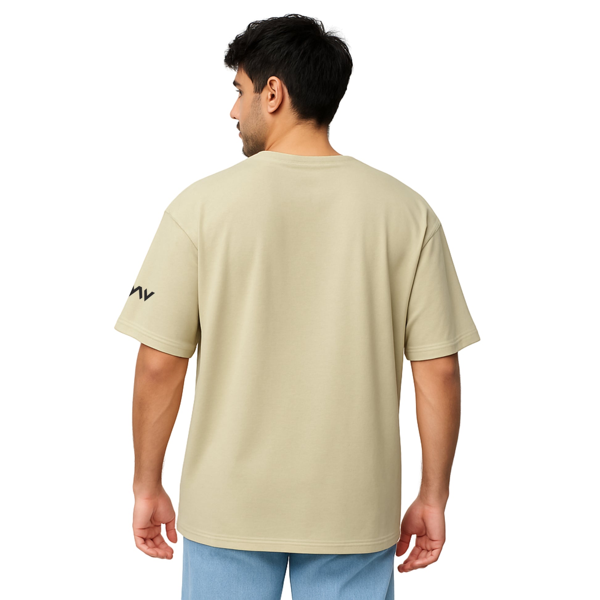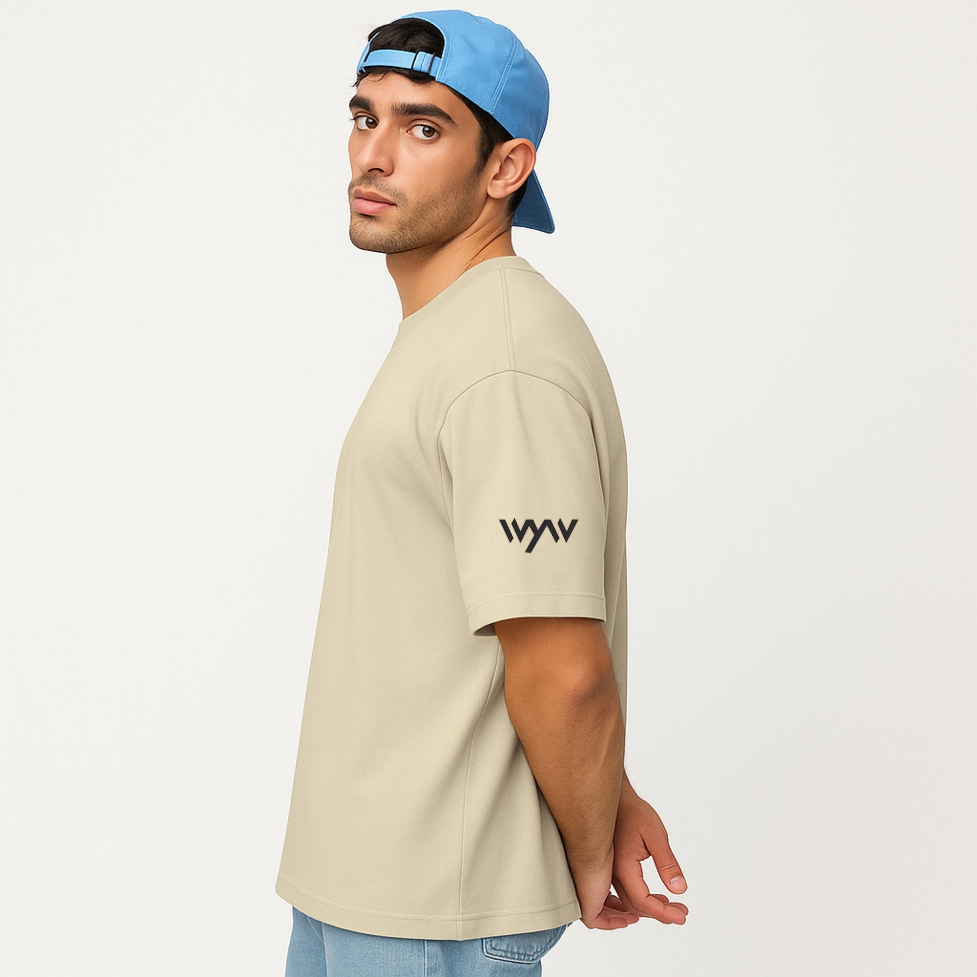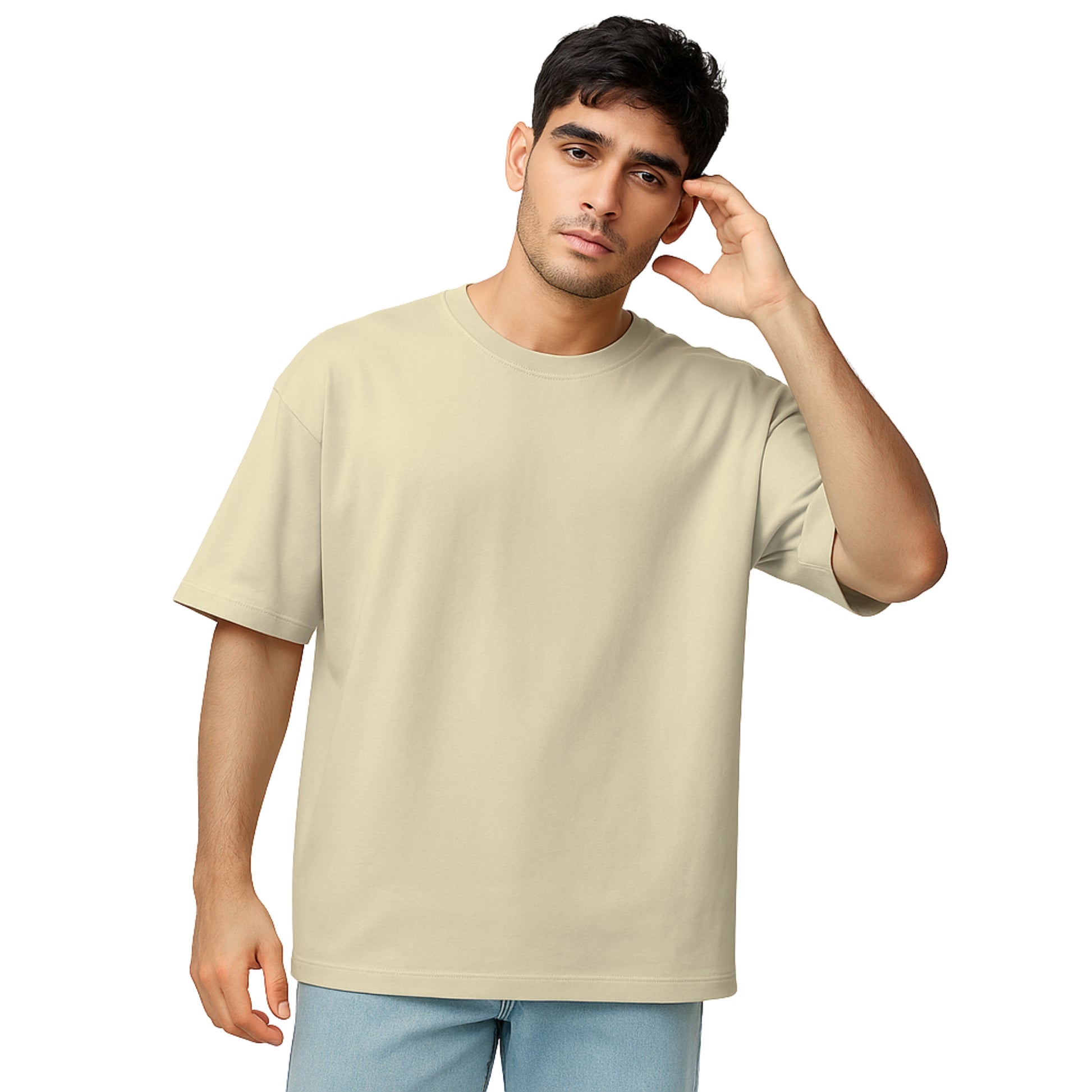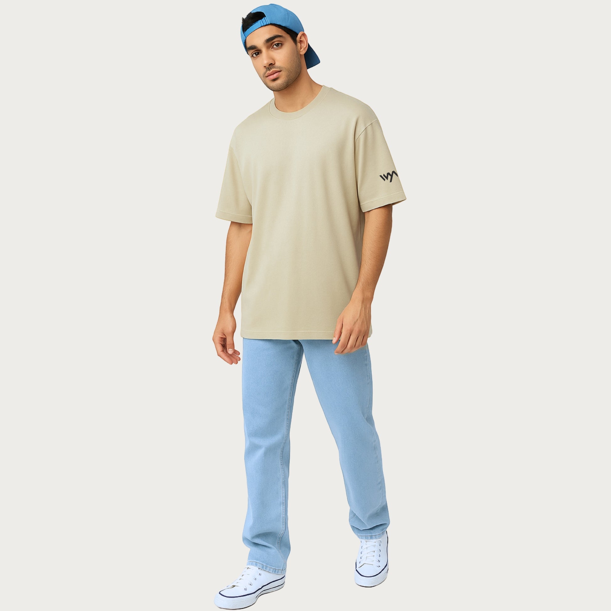 WHT YOU WEAR Solid Oversize Round Neck Beige T-Shirt for Men