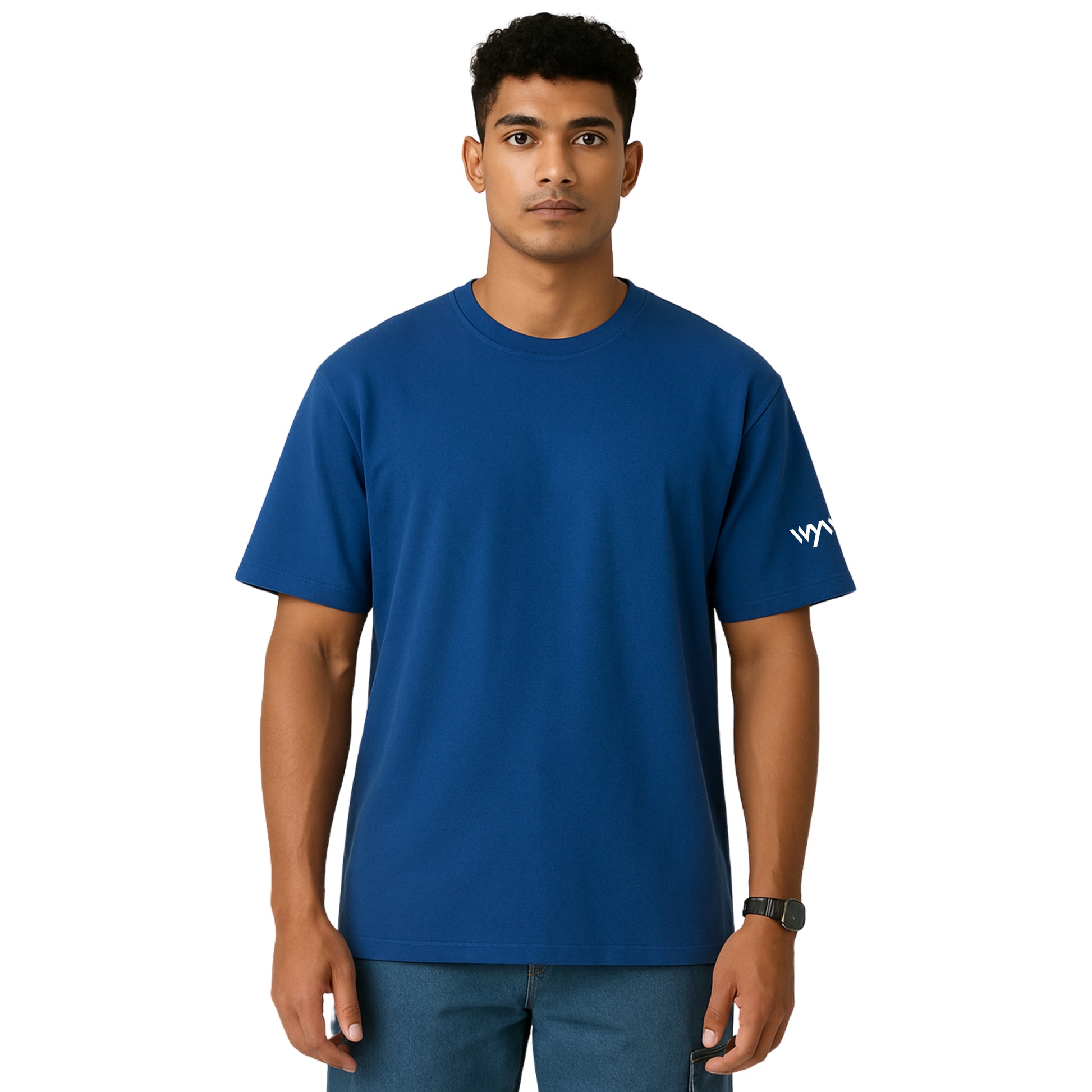 WHT YOU WEAR Solid Oversize Round Neck Blue T-Shirt for Men