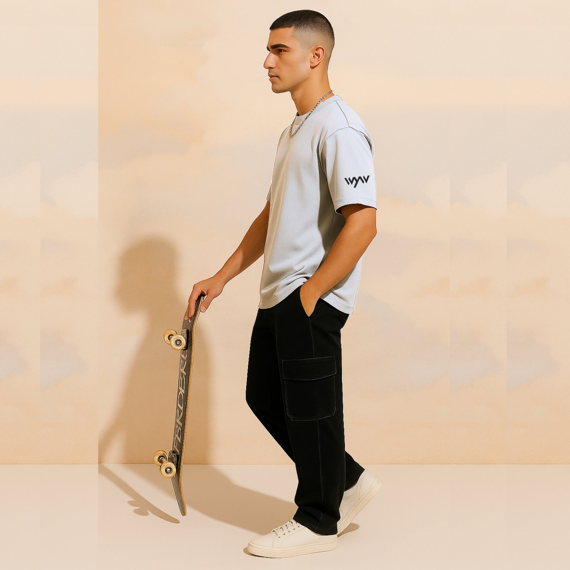 WHT YOU WEAR Solid Oversize Round Neck Grey T-Shirt for Men