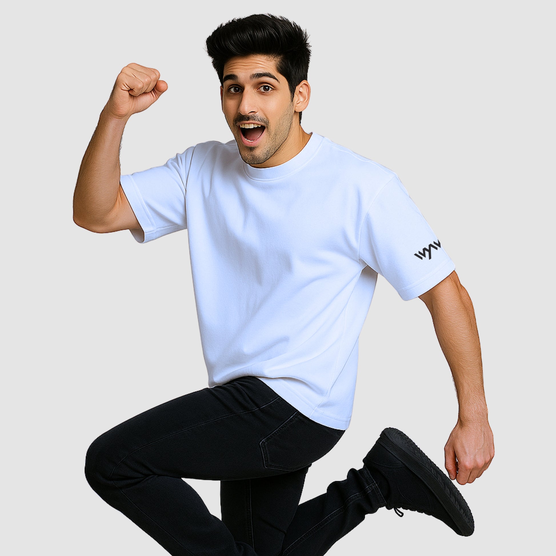 WHT YOU WEAR Solid Oversize Round Neck white T-Shirt for Men