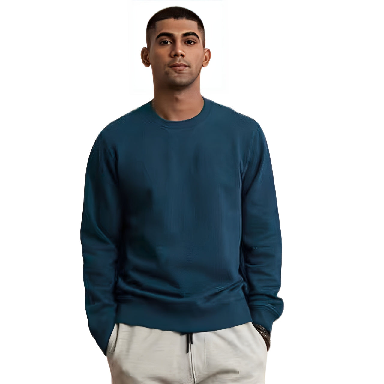 WHT YOU WEAR || Classic Crew Neck Blue Sweatshirt, Long Sleeve