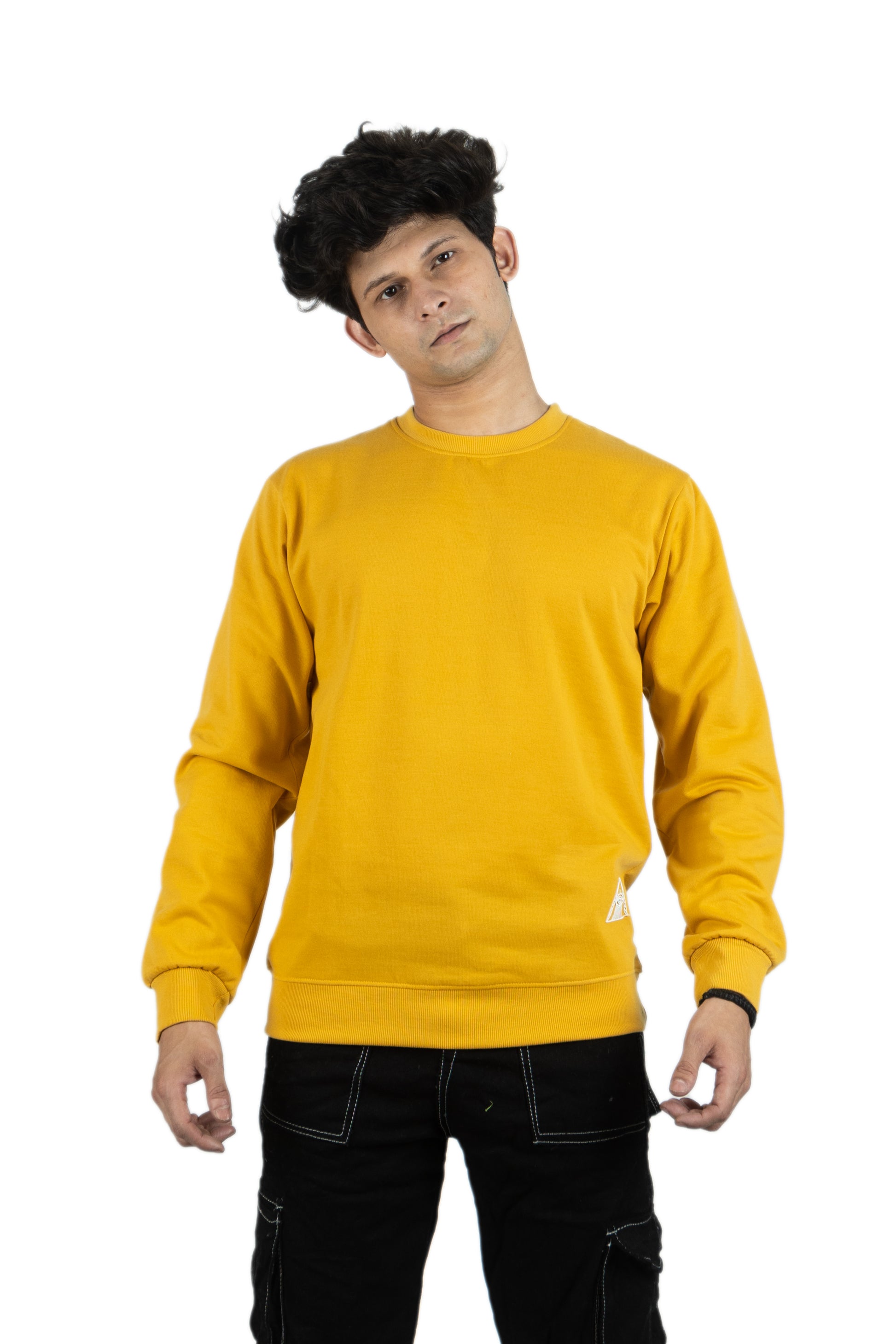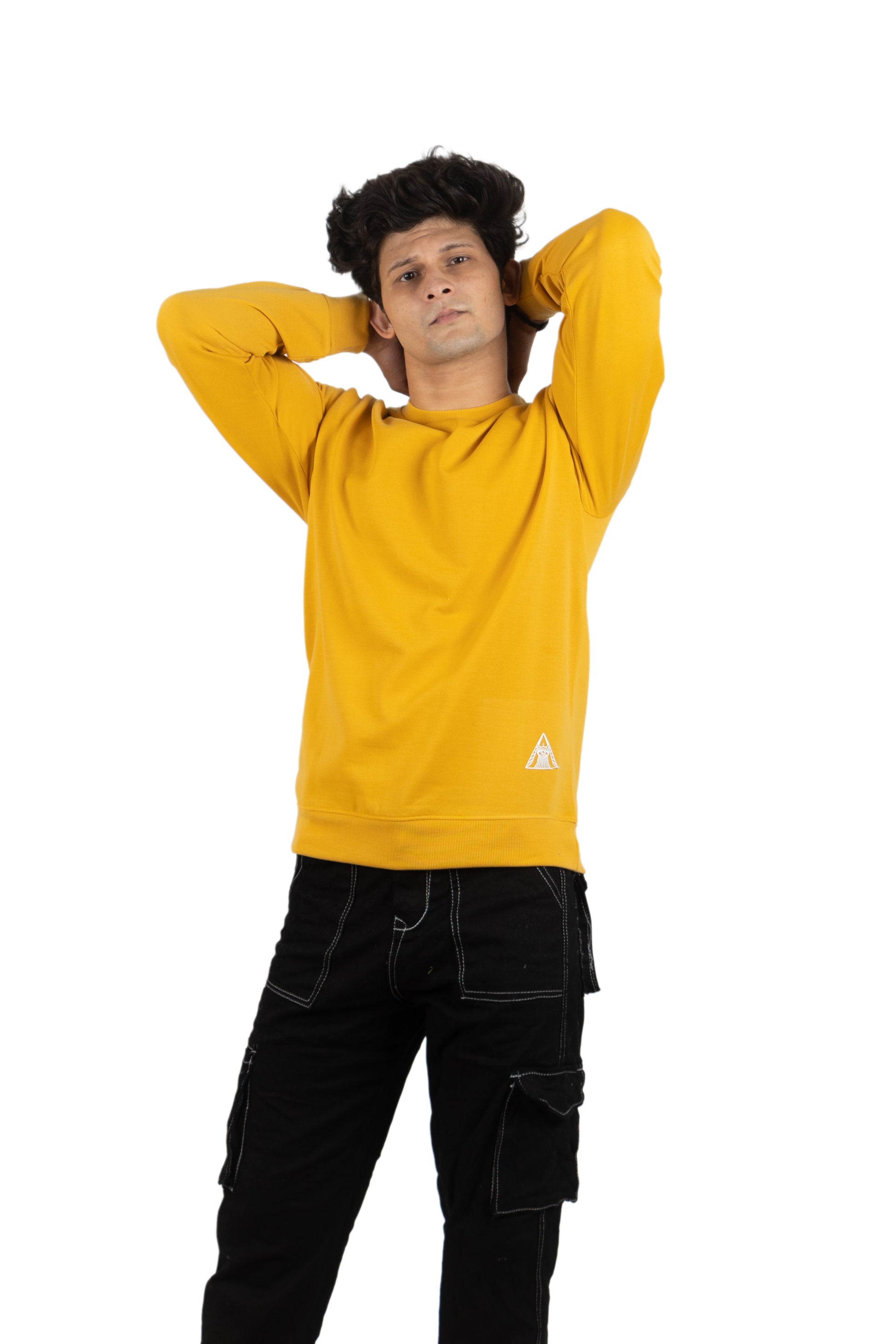 WHT YOU WEAR || Classic Crew Neck Yellow Sweatshirt, Long Sleeve
