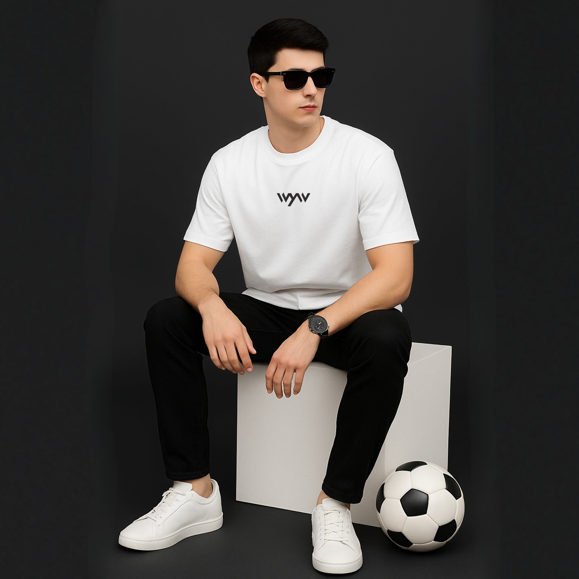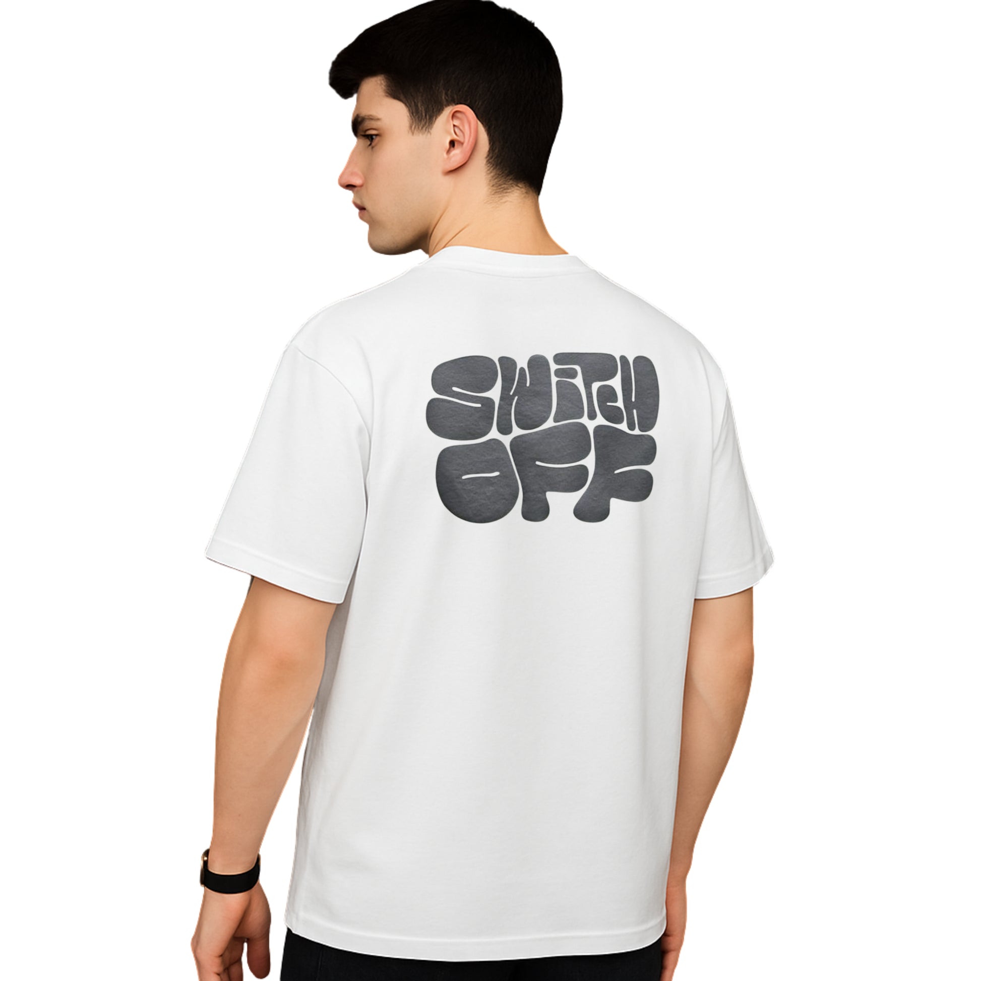 WHT YOU WEAR Switch Off Bubble Text Graphic Oversized T-Shirt for Men